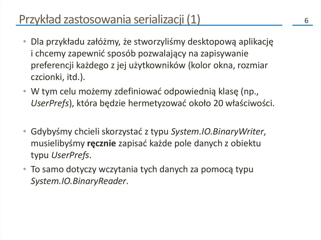 Przykład zastosowania serializacji (1)• Dla przykładu załóżmy, że stworzyliśmy desktopową aplikację