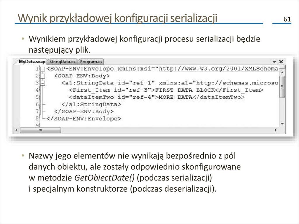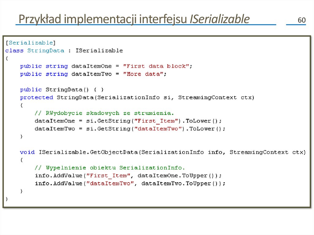 Przykład implementacji interfejsu ISerializable60