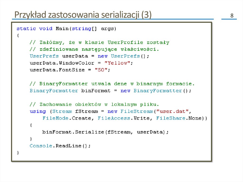 Przykład zastosowania serializacji (3)8