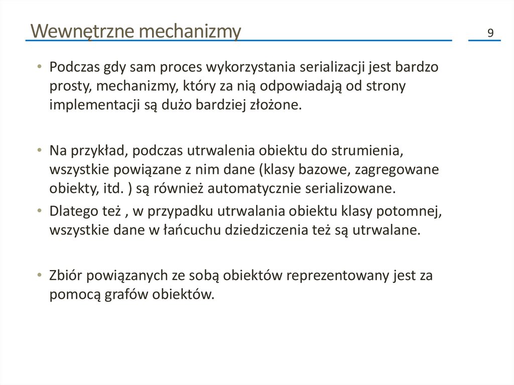 Wewnętrzne mechanizmy• Podczas gdy sam proces wykorzystania serializacji jest bardzo