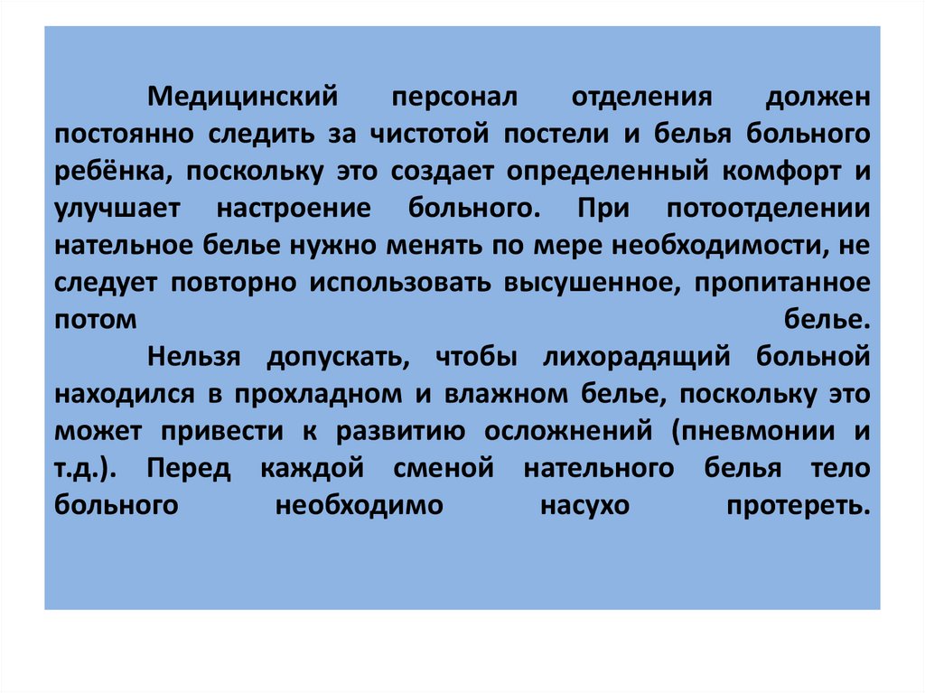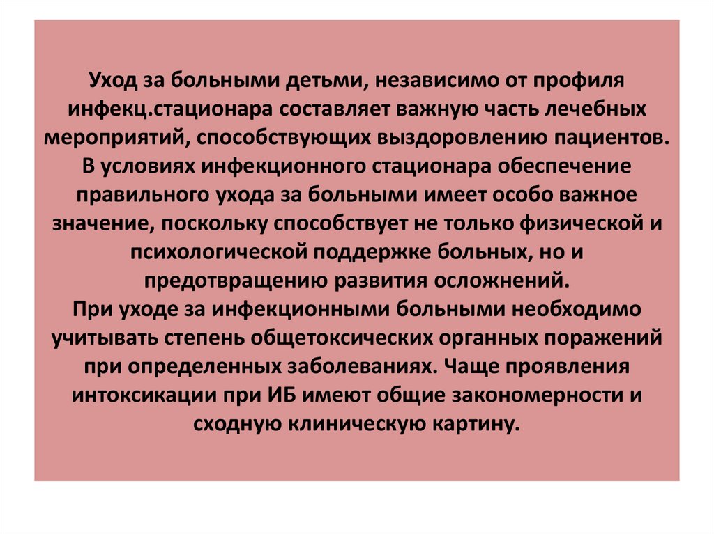 Уход за больными детьми, независимо от профиляинфекц.стационара составляет важную часть лечебных
