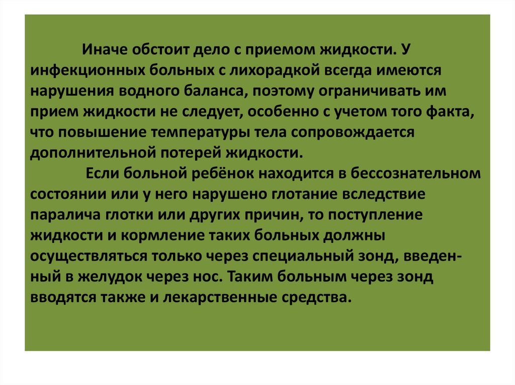 Иначе обстоит дело с приемом жидкости. Уинфекционных больных с лихорадкой всегда имеются