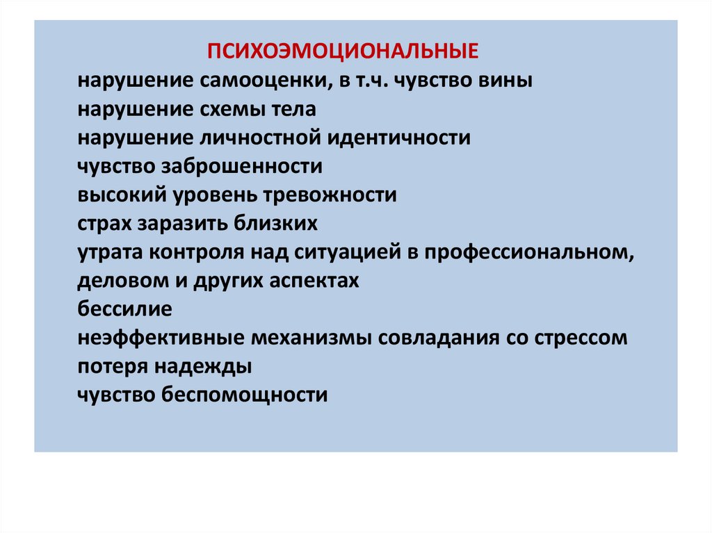ПСИХОЭМОЦИОНАЛЬНЫЕнарушение самооценки, в т.ч. чувство вины