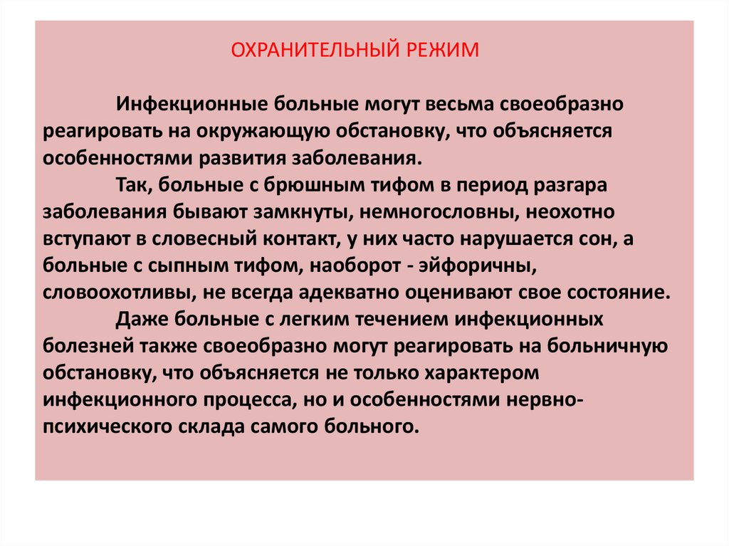 ОХРАНИТЕЛЬНЫЙ РЕЖИМИнфекционные больные могут весьма своеобразно