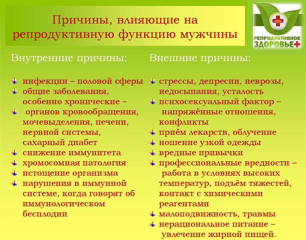 Причины, влияющие нарепродуктивную функцию мужчины