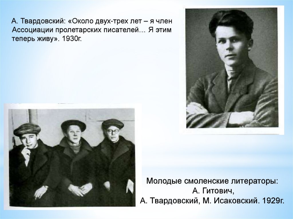 А. Твардовский: «Около двух-трех лет – я членАссоциации пролетарских писателей… Я этим