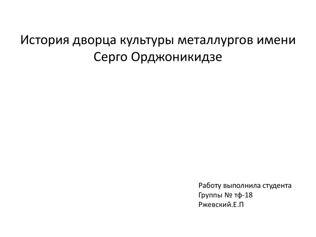 История дворца культуры металлургов имениСерго Орджоникидзе