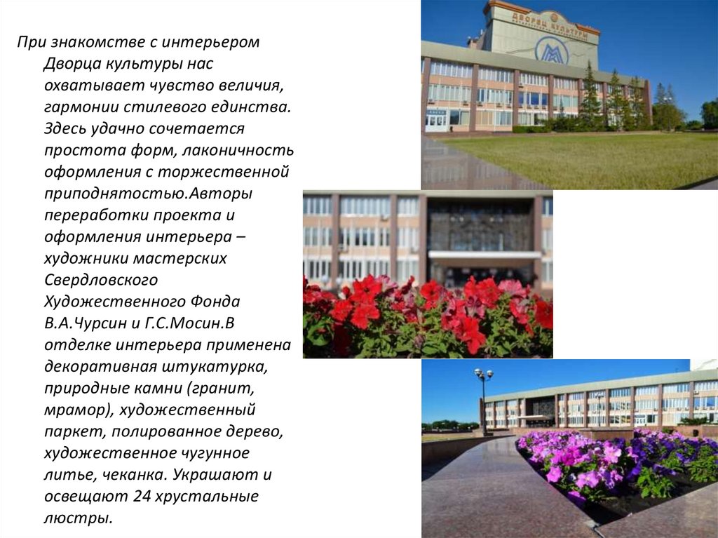 При знакомстве с интерьеромДворца культуры нас