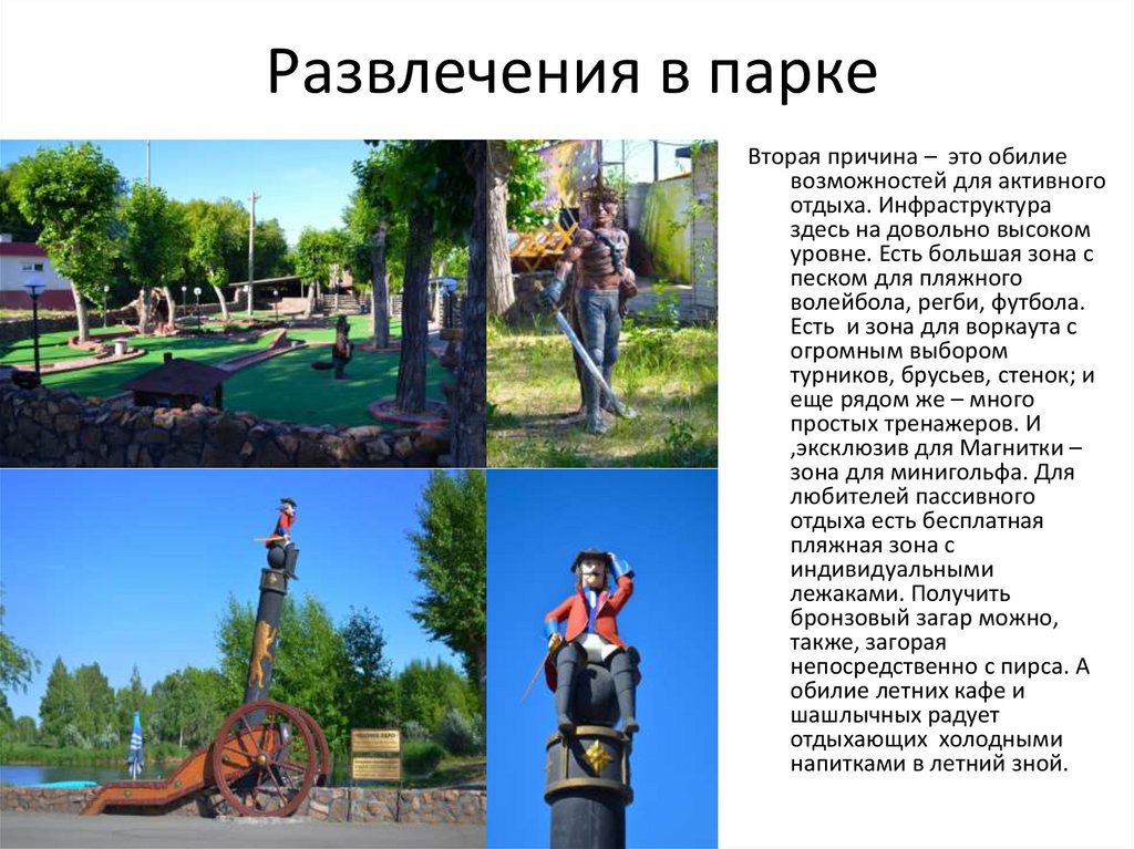 Развлечения в паркеВторая причина – это обилие