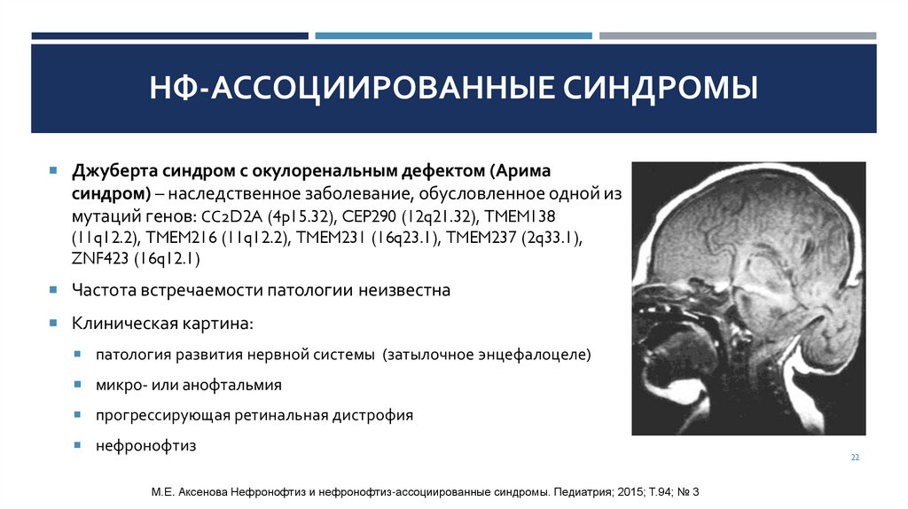 ЛИТЕРАТУРАМ.Е. Аксенова. Нефронофтиз и нефронофтиз-ассоциированные синдромы. Педиатрия; 2015; Т.94; № 3.