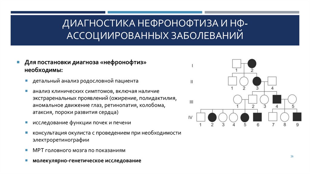 ДИАГНОСТИКА НЕФРОНОФТИЗА И НФАССОЦИИРОВАННЫХ ЗАБОЛЕВАНИЙДля постановки диагноза «нефронофтиз»