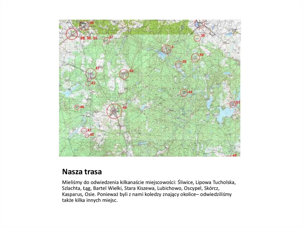 Nasza trasaMieliśmy do odwiedzenia kilkanaście miejscowości: Śliwice, Lipowa Tucholska,