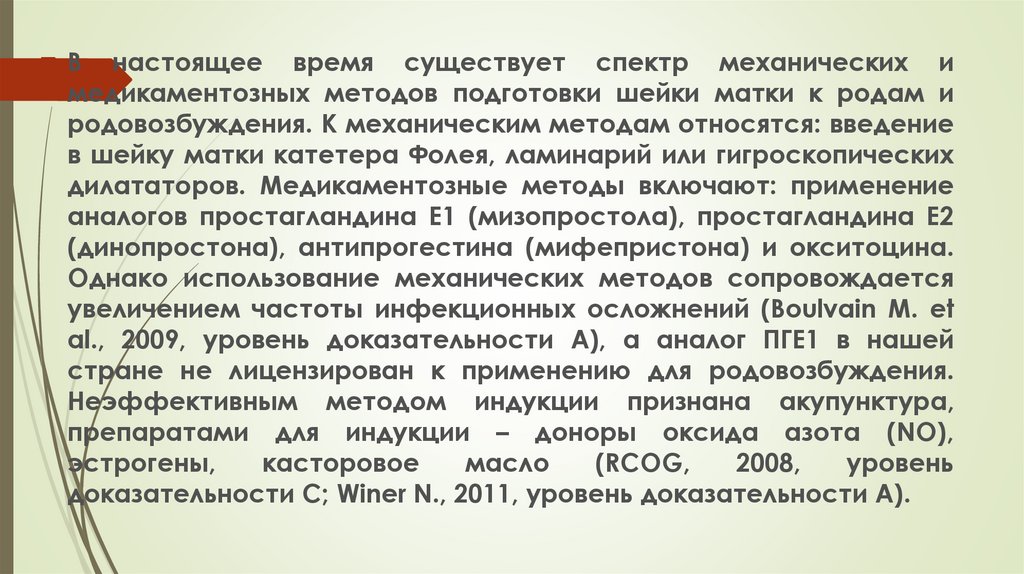 В настоящее время существует спектр механических имедикаментозных методов подготовки шейки матки к родам и
