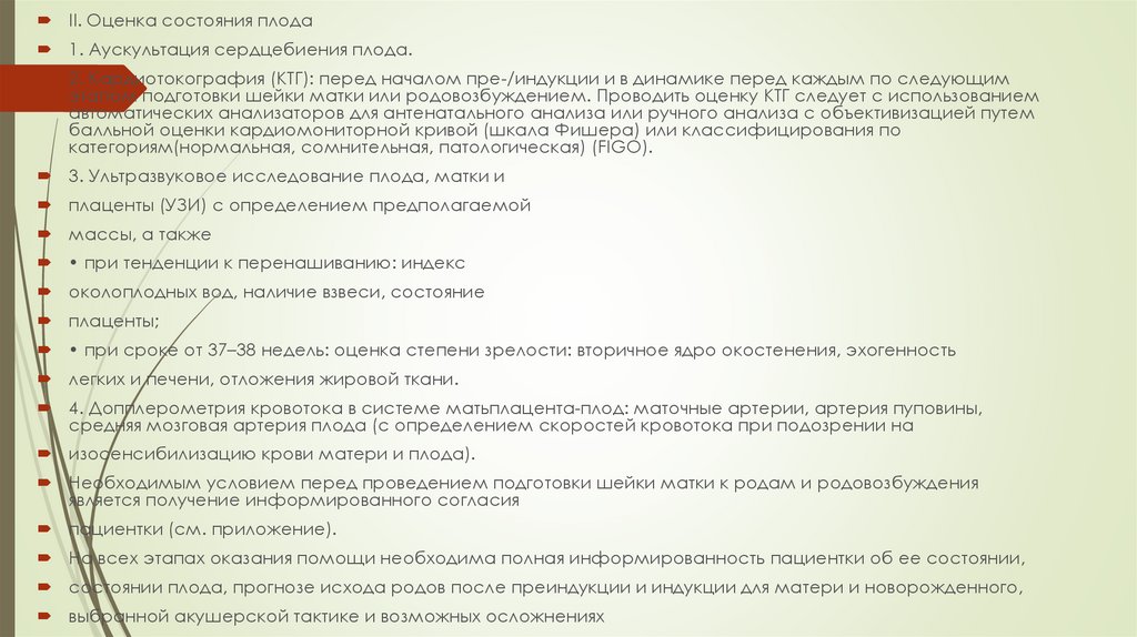 Последовательность выполнения протокола преиндукции и индукции родовI. Оценка состояния матери