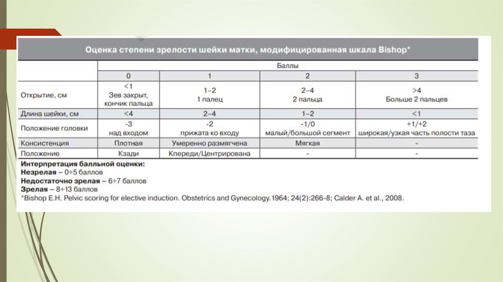 Существует упрощенная шкала оценки степени «зрелости» шейки матки, предложенная Е. X. Бишопом .