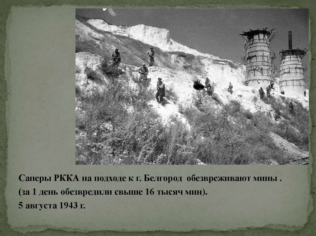 Саперы РККА на подходе к г. Белгород обезвреживают мины .(за 1 день обезвредили свыше 16 тысяч мин).