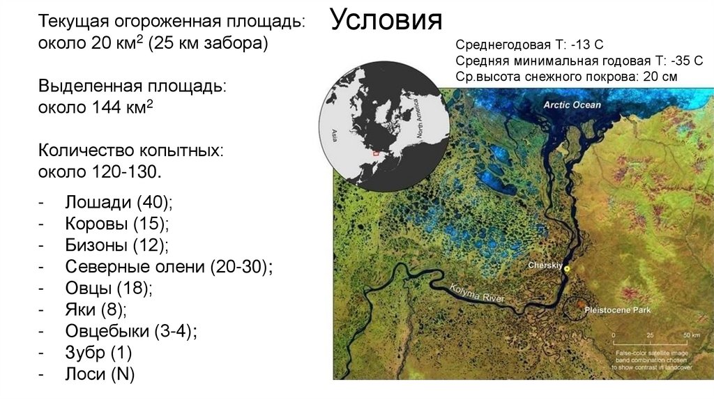 Текущая огороженная площадь:около 20 км2 (25 км забора)
