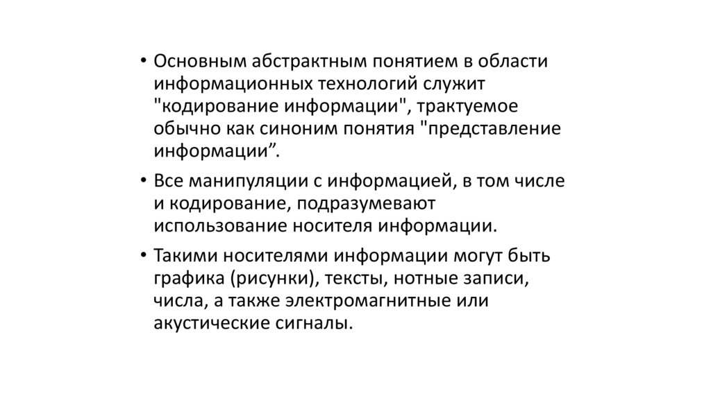 • Основным абстрактным понятием в областиинформационных технологий служит