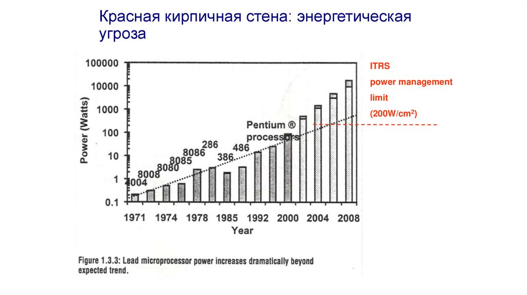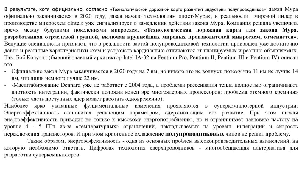 - -Масштабирование Dennard уже не работает с 2004 года, а проблемы рассеивания тепла полностью ограничивают