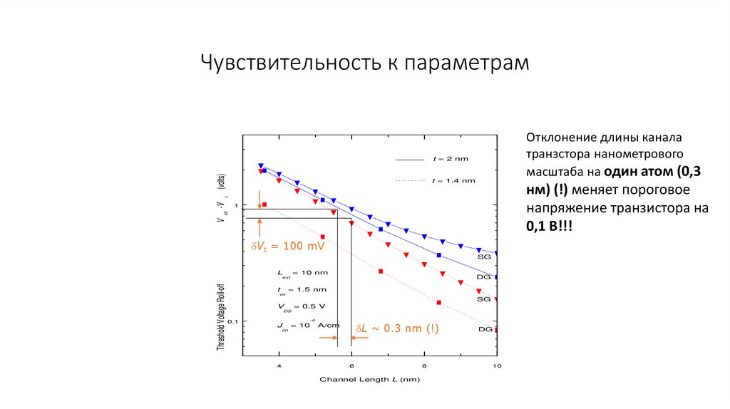 Чувствительность к параметрамОтклонение длины канала