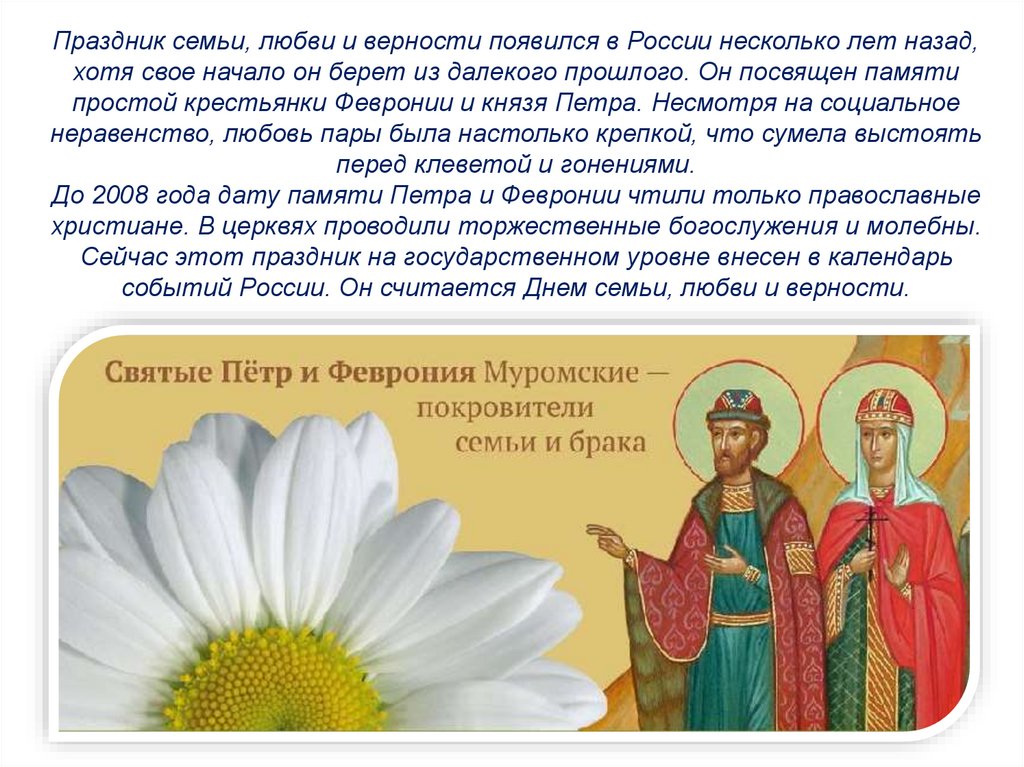 событий России. Он считается Днем семьи, любви и верности.