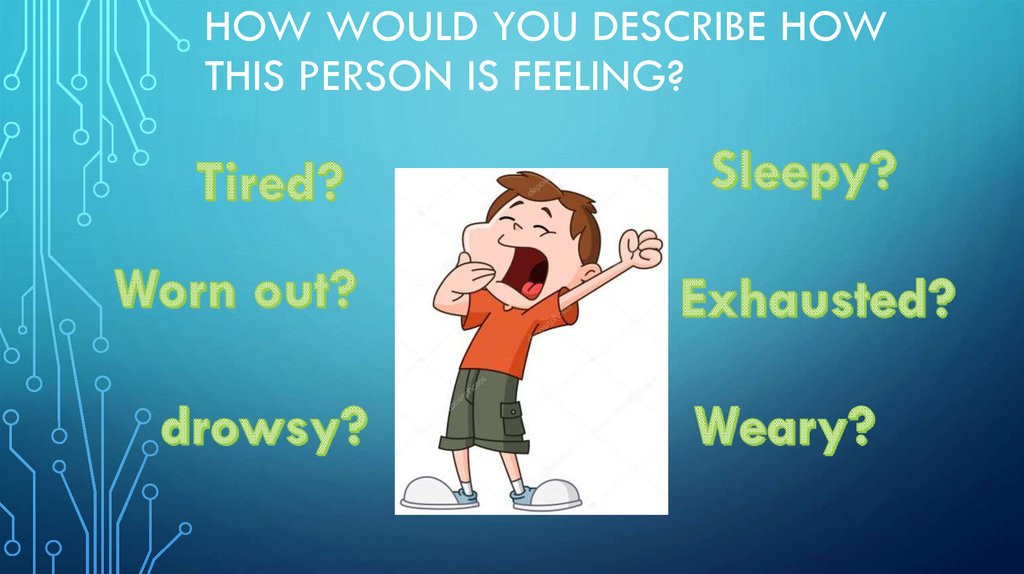 HOW WOULD YOU DESCRIBEHOW THIS PERSON IS FEELING?