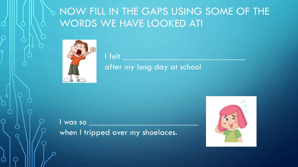 NOW FILL IN THE GAPS USING SOME OF THEWORDS WE HAVE LOOKED AT!