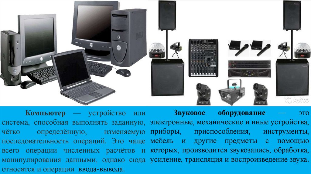 усиление, трансляция и воспроизведение звука.