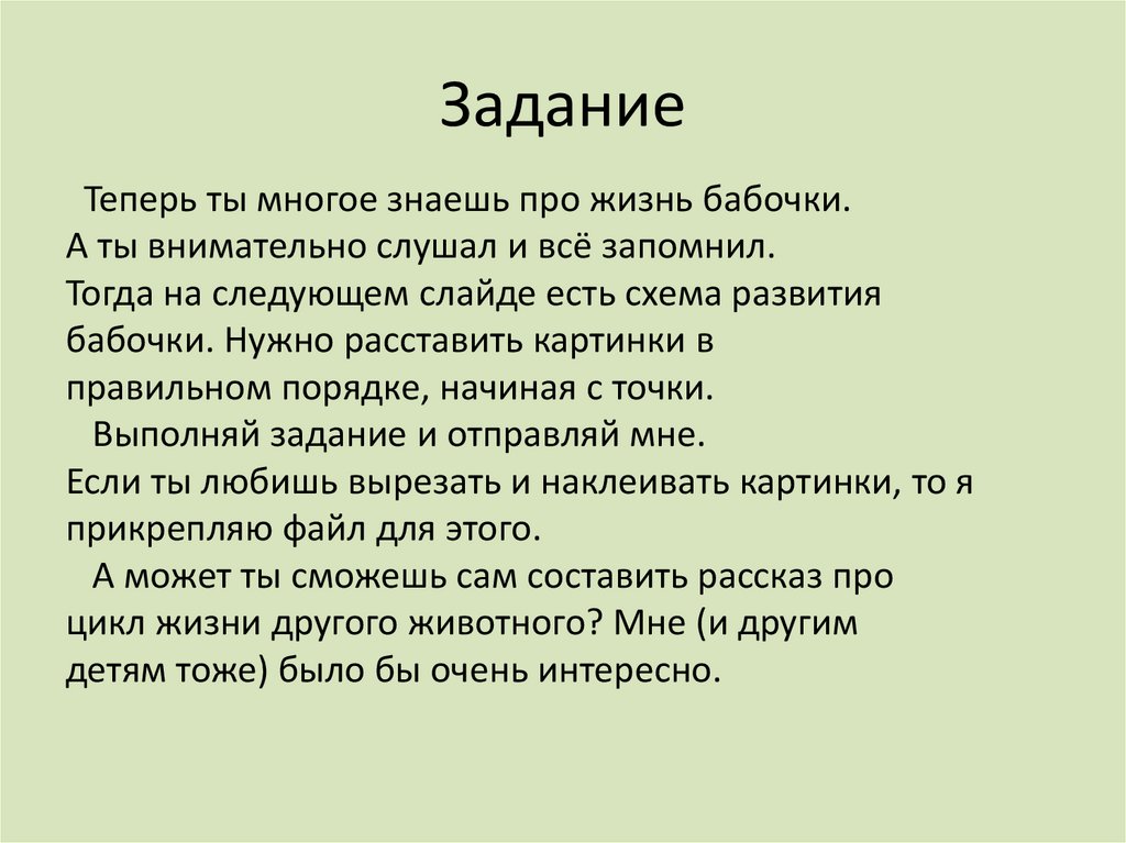ЗаданиеТеперь ты многое знаешь про жизнь бабочки.