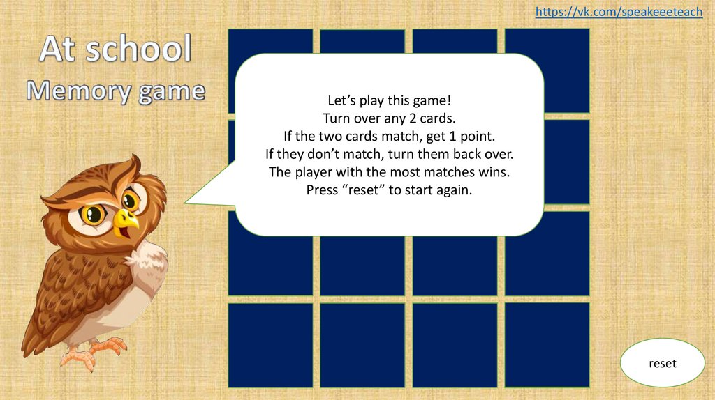 If the two cards match, get 1 point.