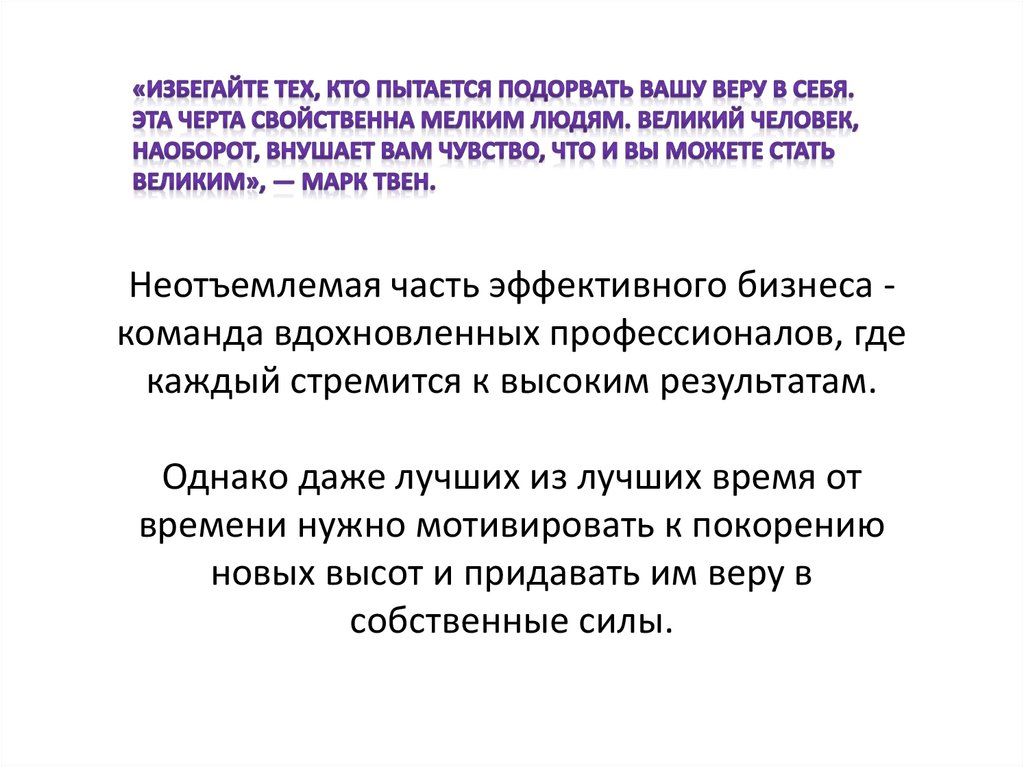 Неотъемлемая часть эффективного бизнеса команда вдохновленных профессионалов, гдекаждый стремится к высоким результатам.