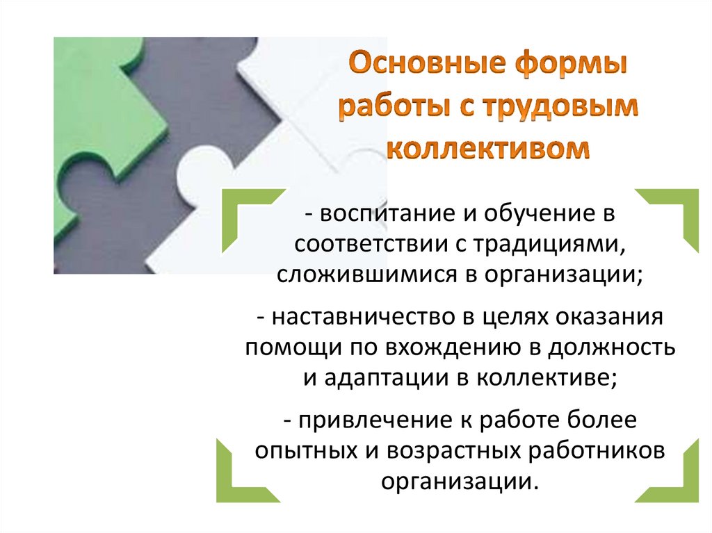 - прямое информационное воздействие на работника;- создание и поддержание здорового психологического климата в