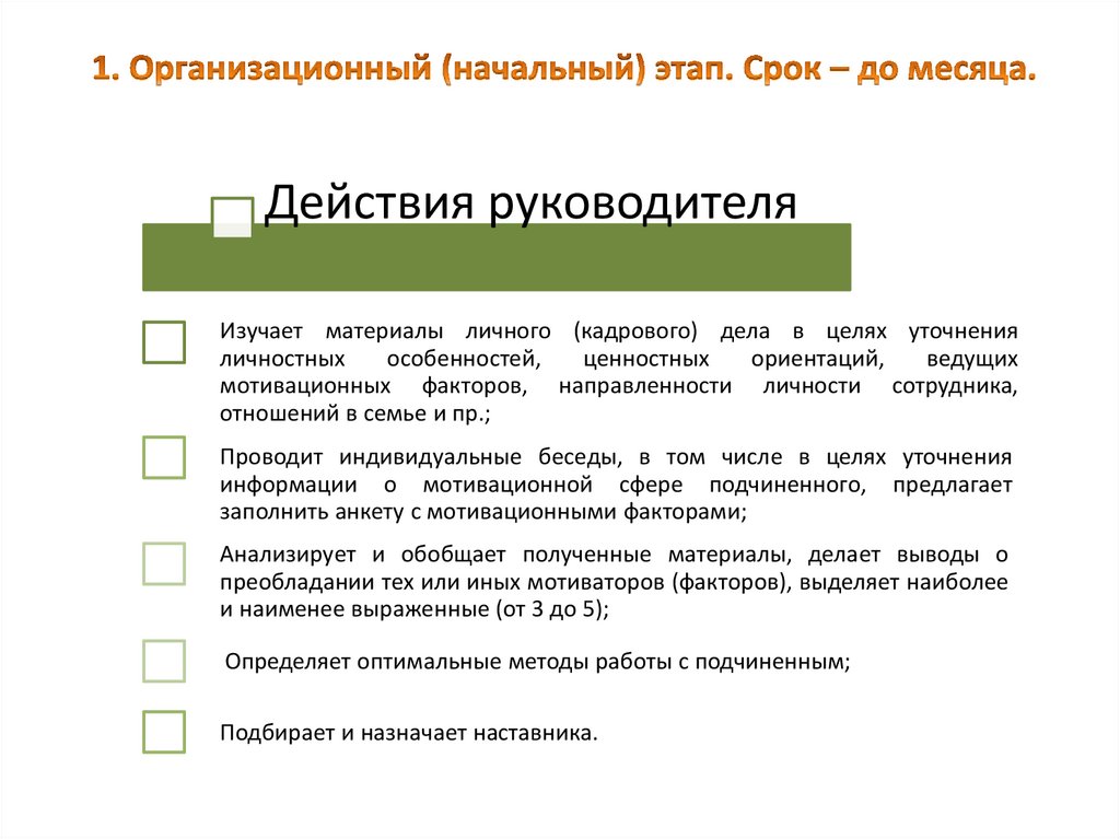 Действия руководителяИзучает материалы личного (кадрового) дела в целях уточнения
