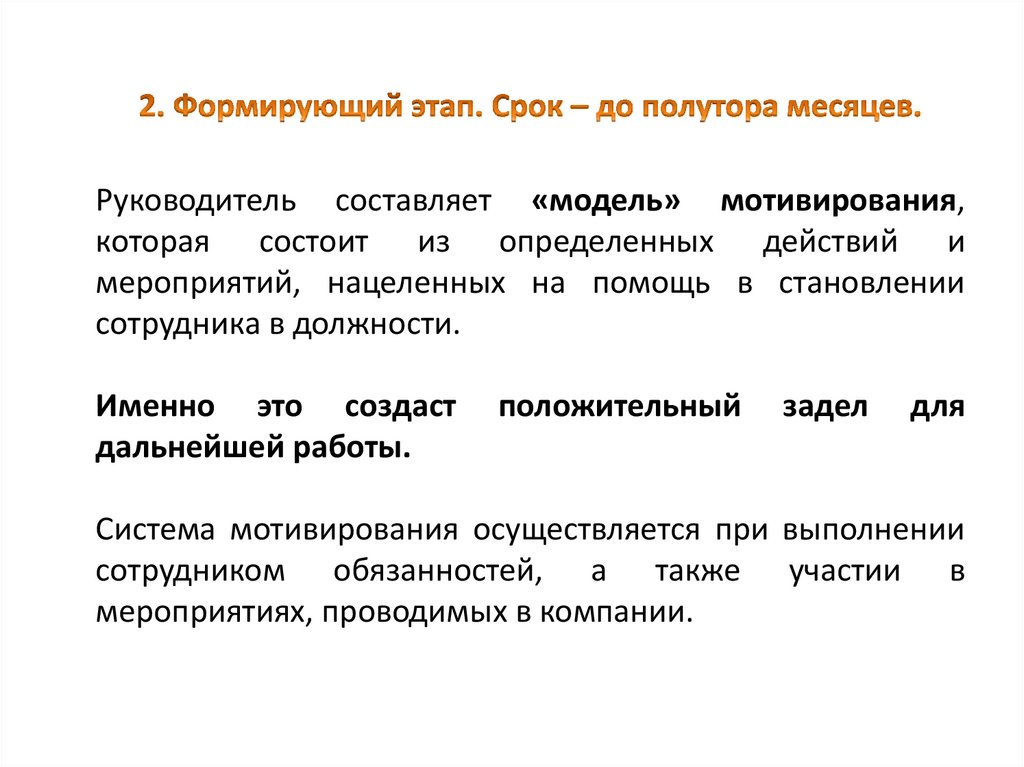 Руководитель составляет «модель» мотивирования,которая состоит из определенных действий и