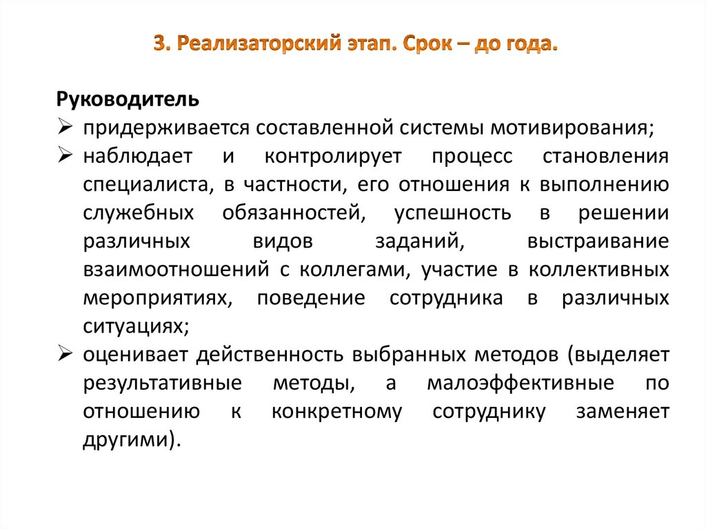 Определяет оптимальные методы работы с подчиненным;