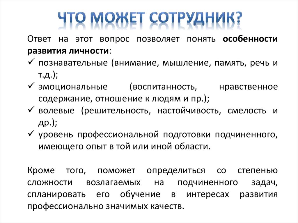 Ответ на этот вопрос позволяет руководителюопределять мотивационную и личностную