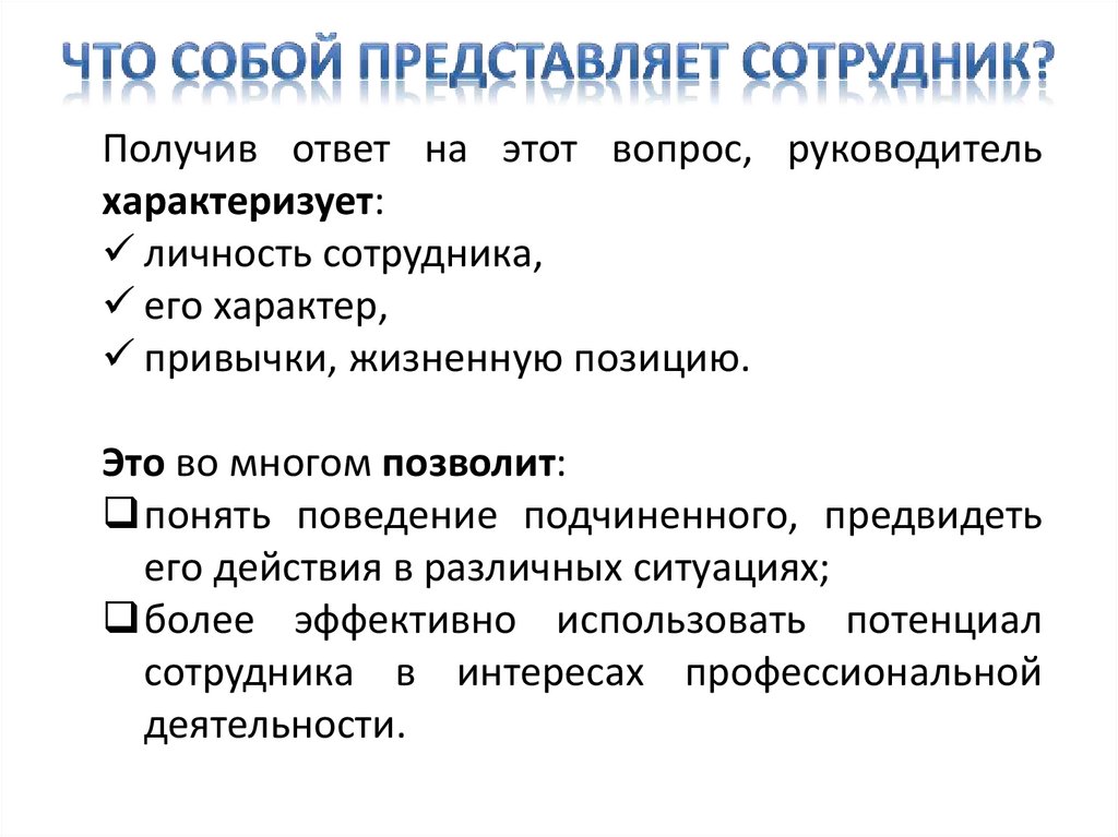 понять поведение подчиненного, предвидеть