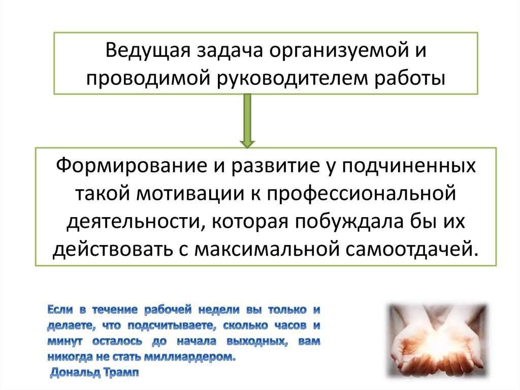 Ведущая задача организуемой ипроводимой руководителем работы