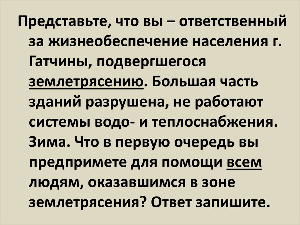 Представьте, что вы – ответственныйза жизнеобеспечение населения г.