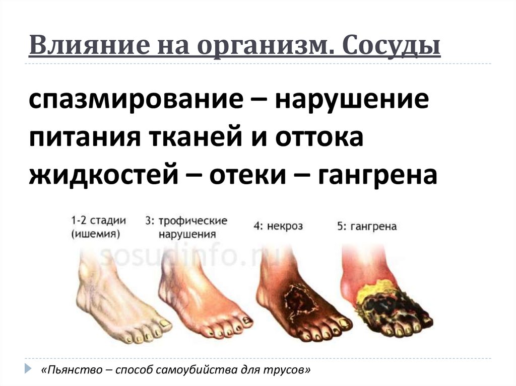 Влияние на организм. Сосудыспазмирование – нарушение