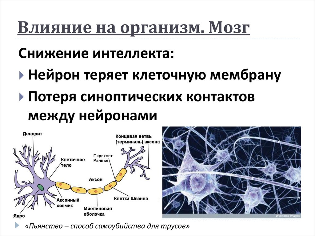 Влияние на организм. МозгСнижение интеллекта: