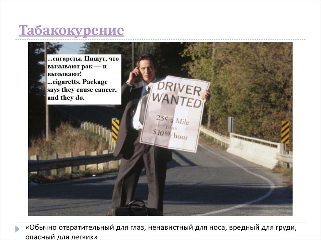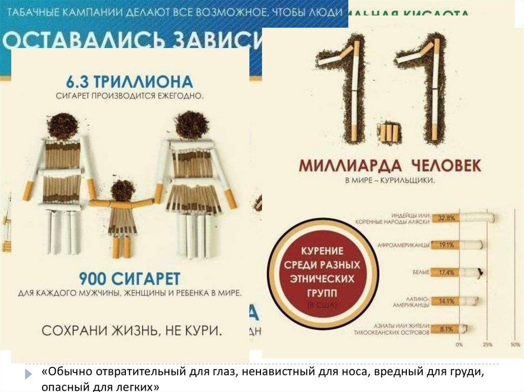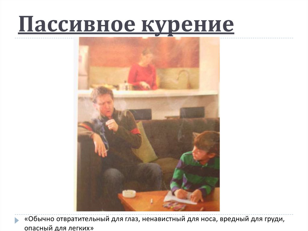 Пассивное курение«Обычно отвратительный для глаз, ненавистный для носа, вредный для груди,