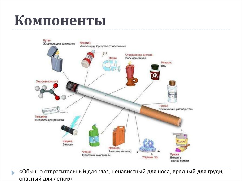 Компоненты«Обычно отвратительный для глаз, ненавистный для носа, вредный для груди,