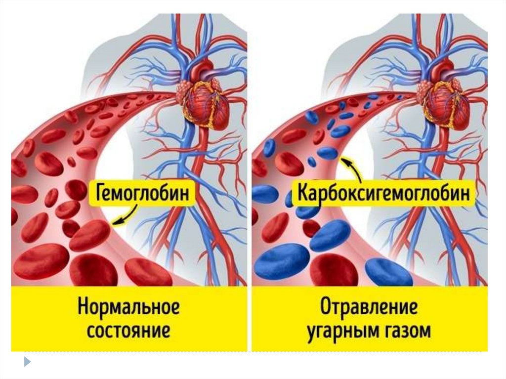 Окись углеродалегкие - гемоглобин – кровь головной мозг