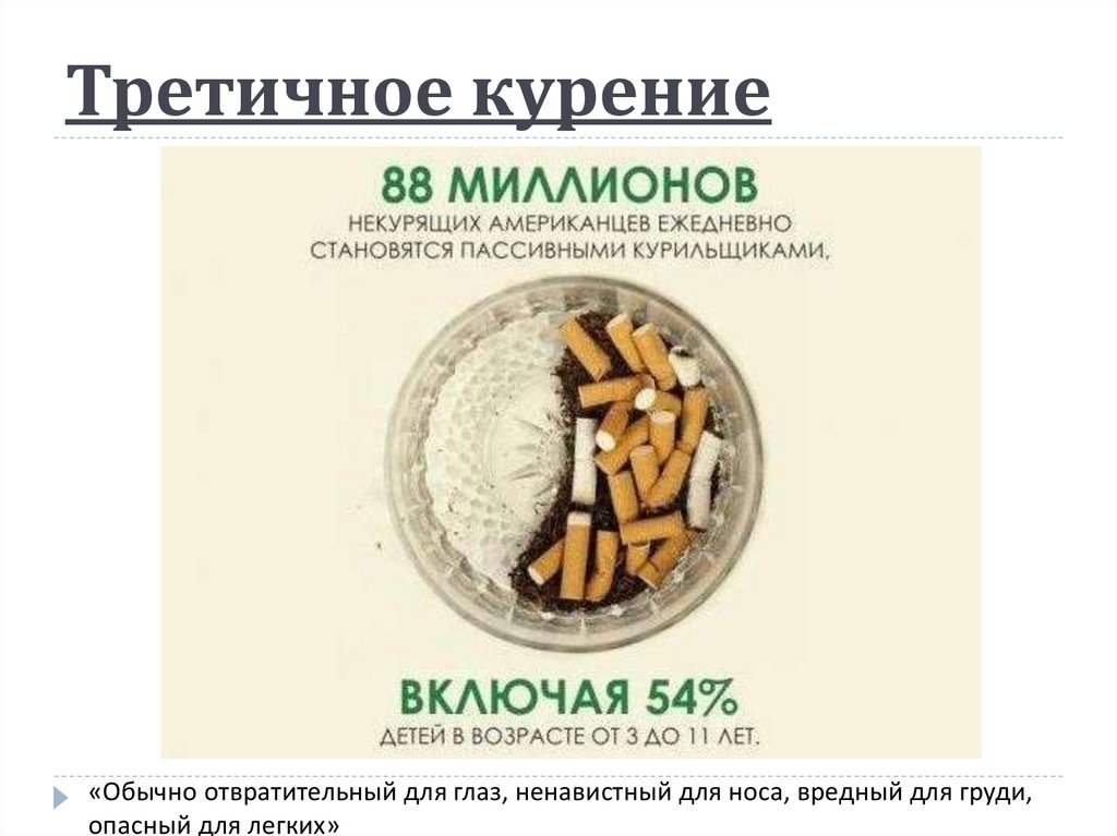 Третичное курение«Обычно отвратительный для глаз, ненавистный для носа, вредный для груди,