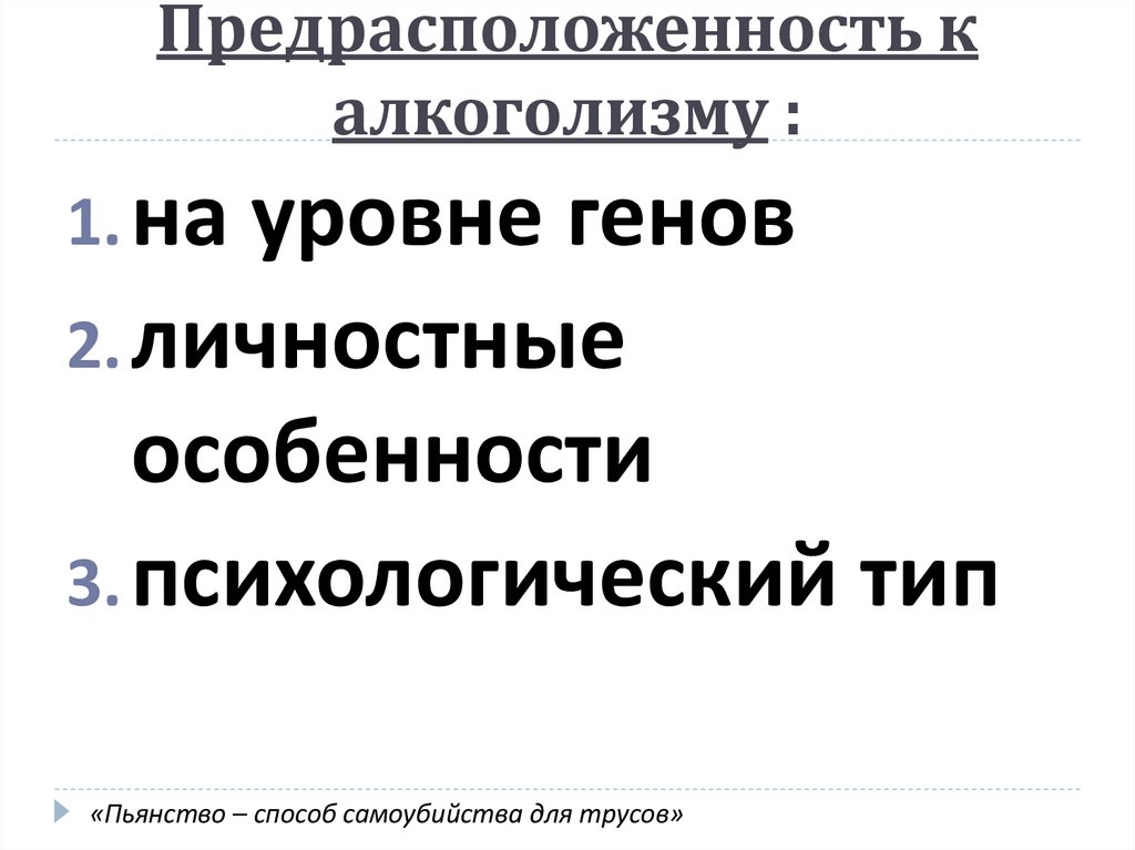 Предрасположенность калкоголизму :