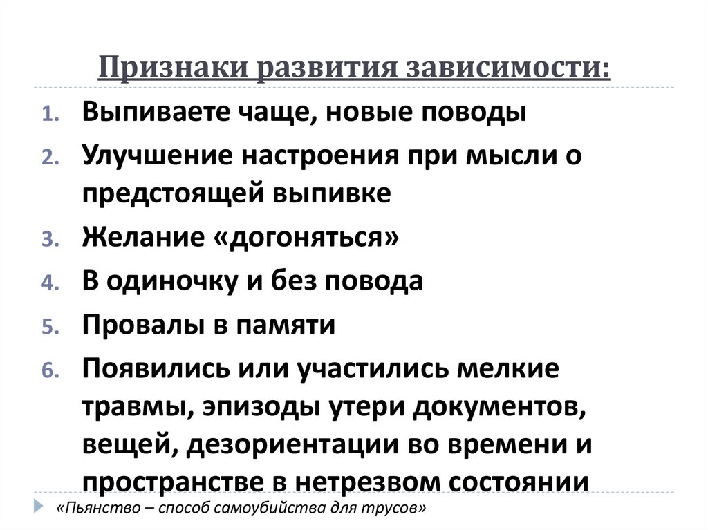 Признаки развития зависимости: