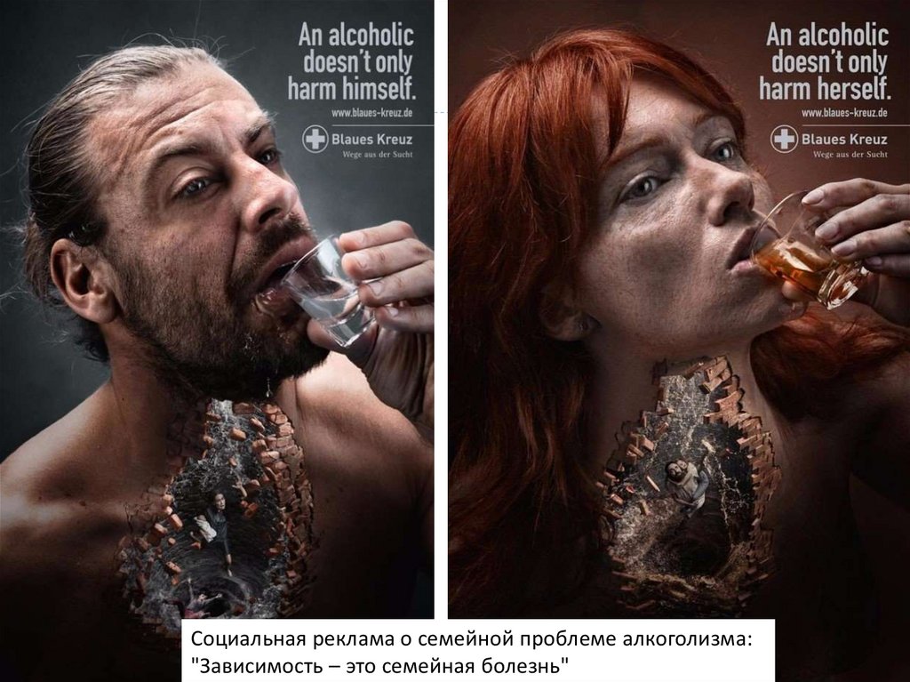 Социальная реклама о семейной проблеме алкоголизма:"Зависимость – это семейная болезнь"