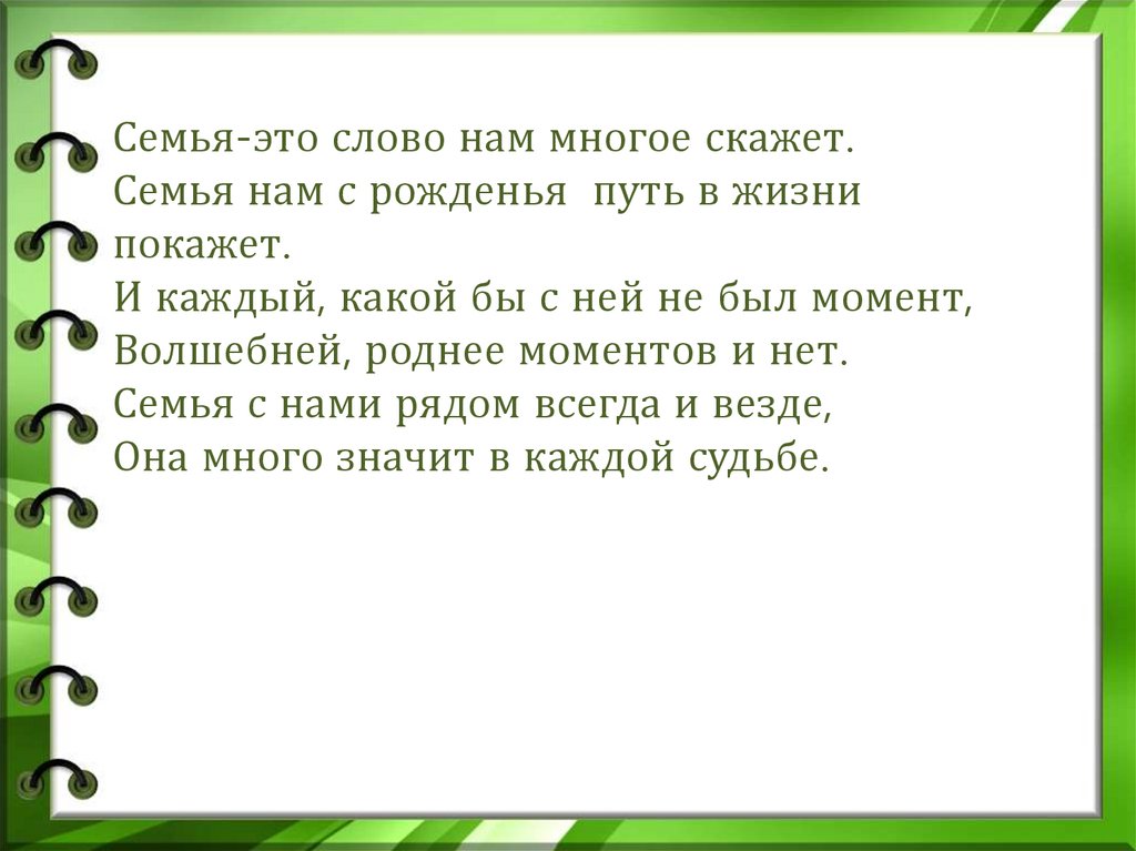 Семья-это слово нам многое скажет.Семья нам с рожденья путь в жизни