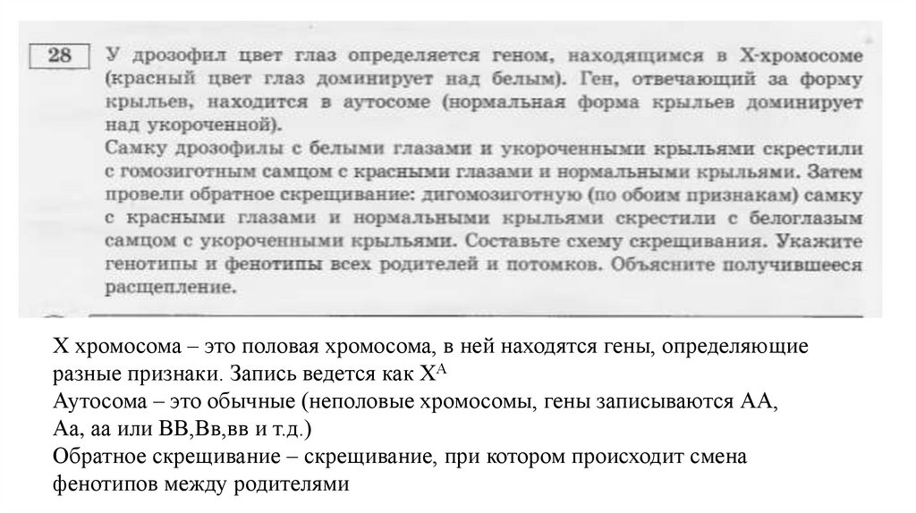 Х хромосома – это половая хромосома, в ней находятся гены, определяющиеразные признаки. Запись ведется как ХА